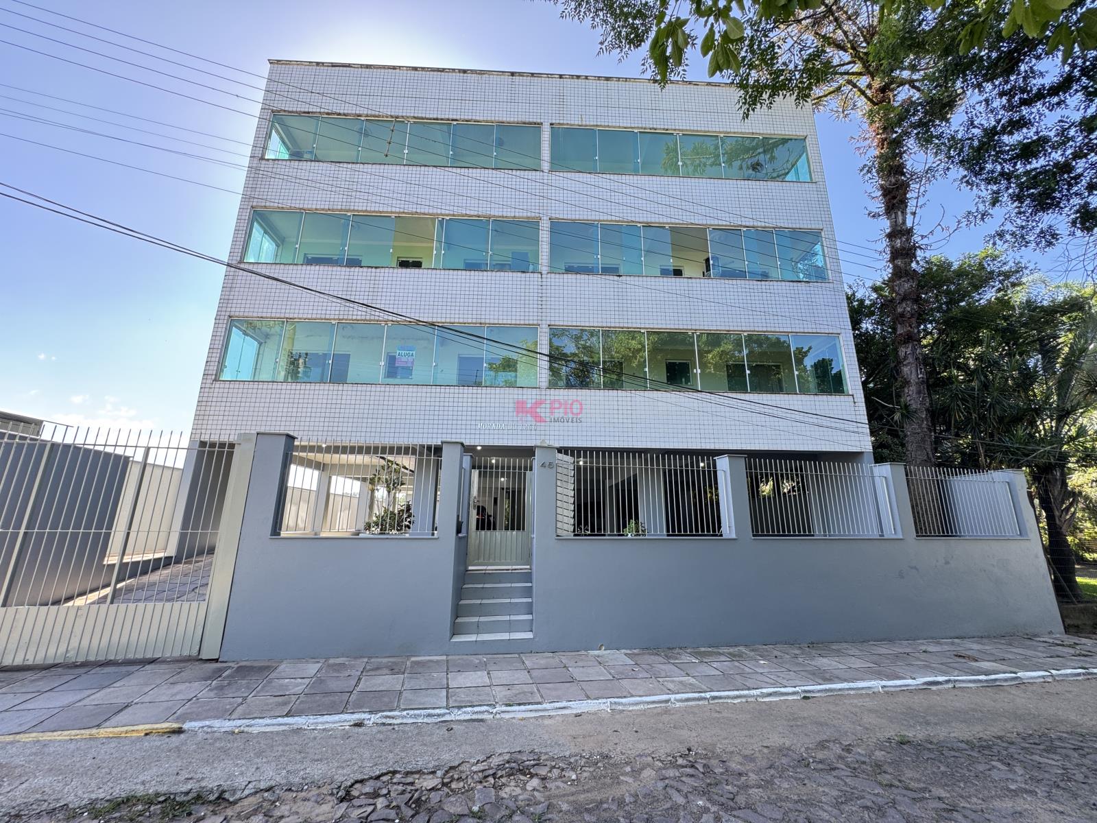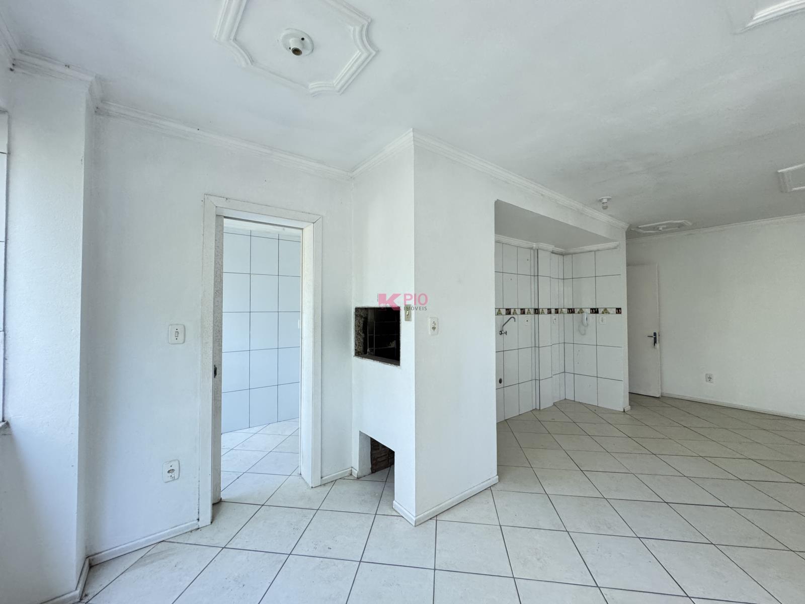 Apartamento no centro de São Sebastião do Caí com 2 dormitórios, banheiro, cozinha, sala de estar, cozinha, churrasqueira e área de serviço.