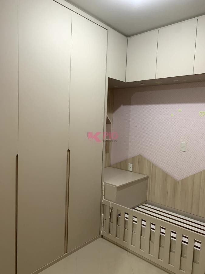 A cozinha e o quarto infantil são sob medida com roupeiro, sofá e rack.