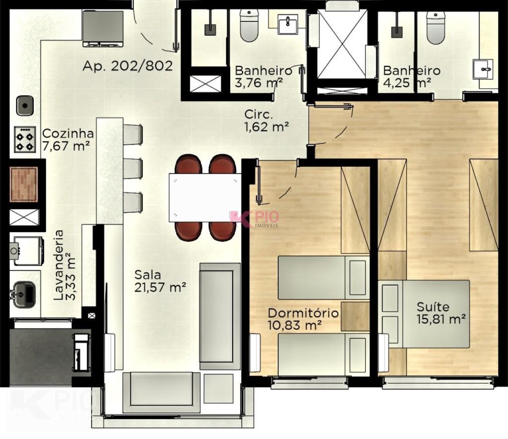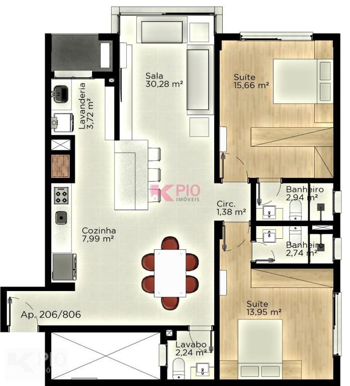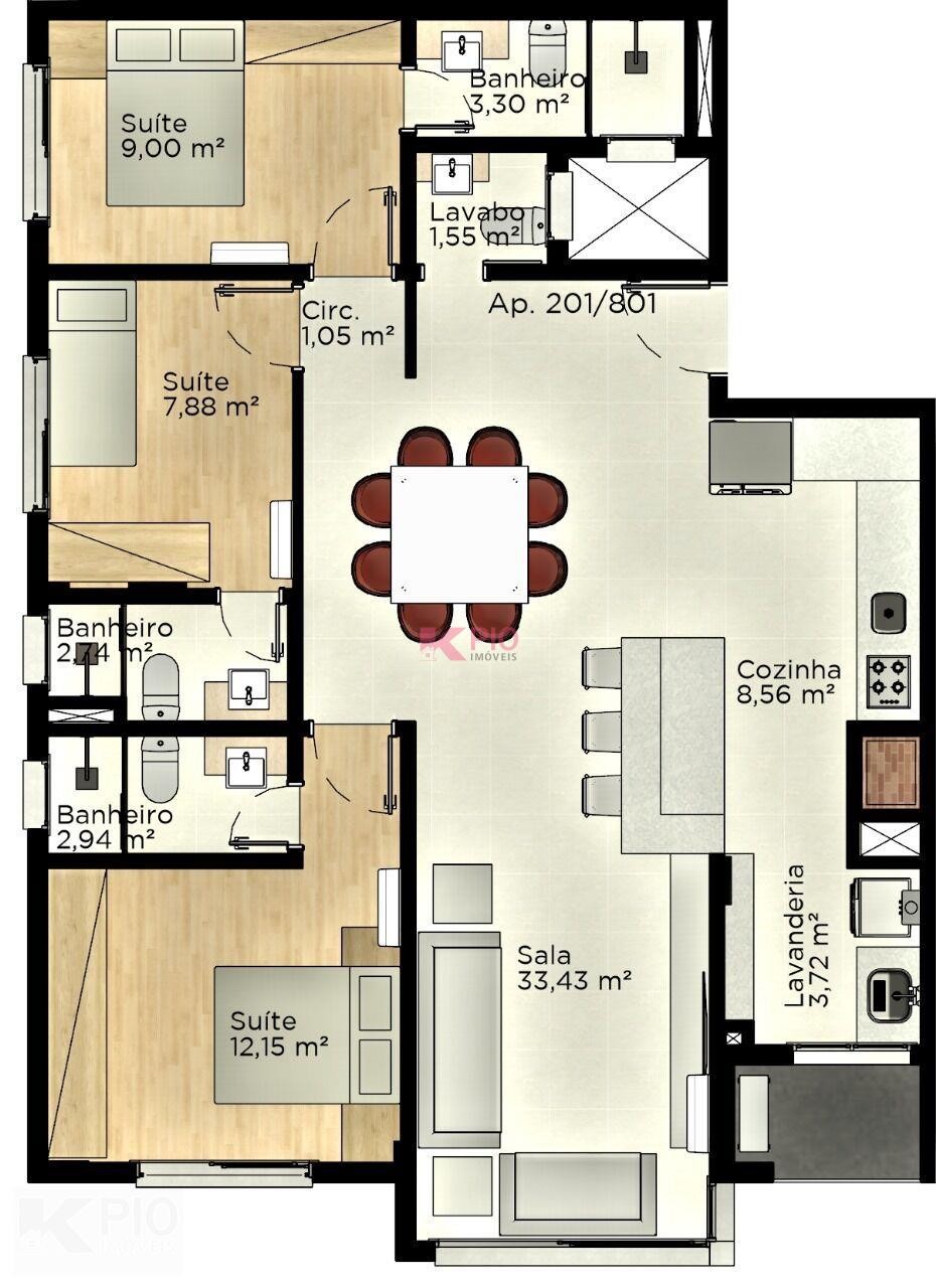 Suítes e metragens que variam de 102m² a 124m².