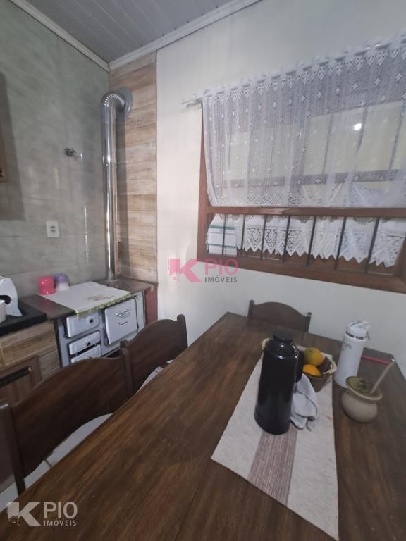 Casa de alvenaria com 2 dormitórios, sala, cozinha, área de serviço, e garagem coberta. Também possui fogão à lenha, churrasqueira, ar condicionado, e alguns móveis sob medida ficam na casa.