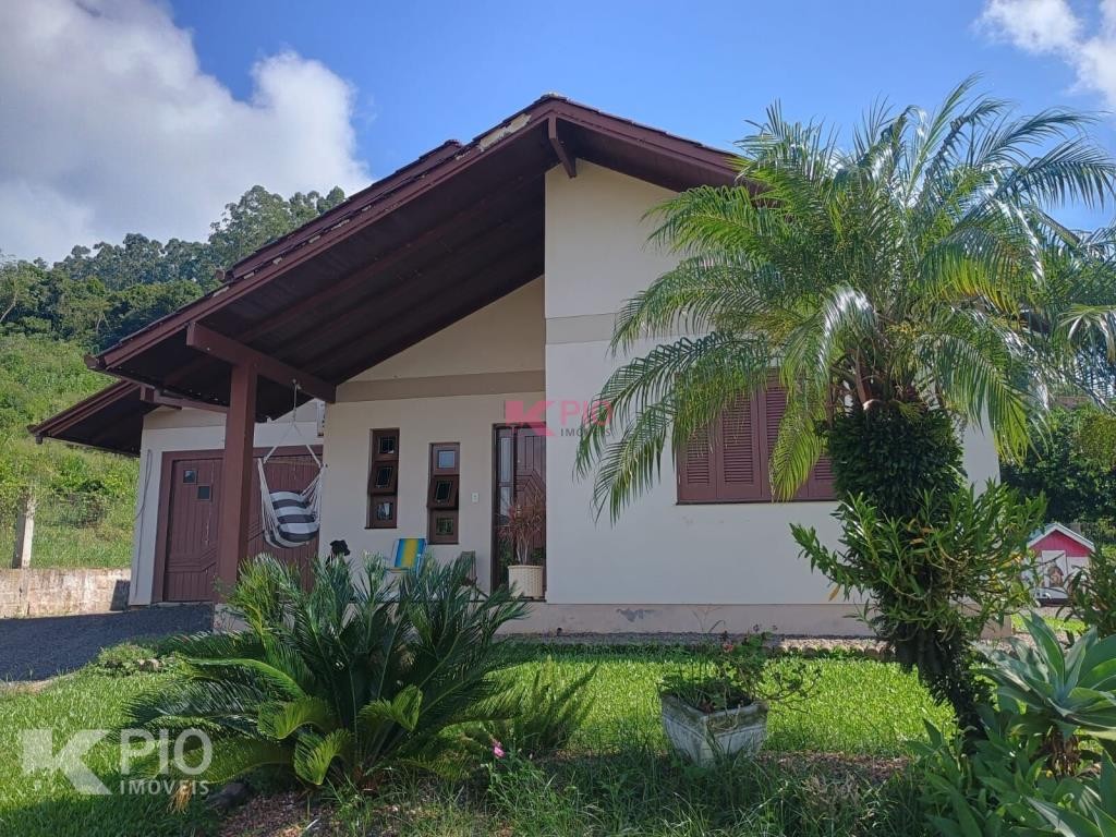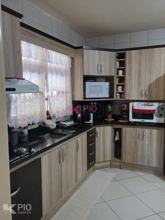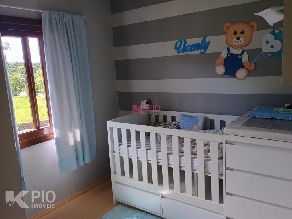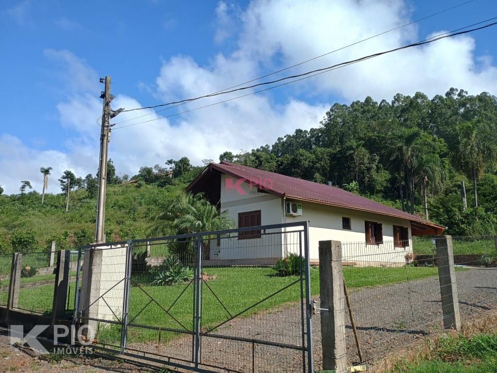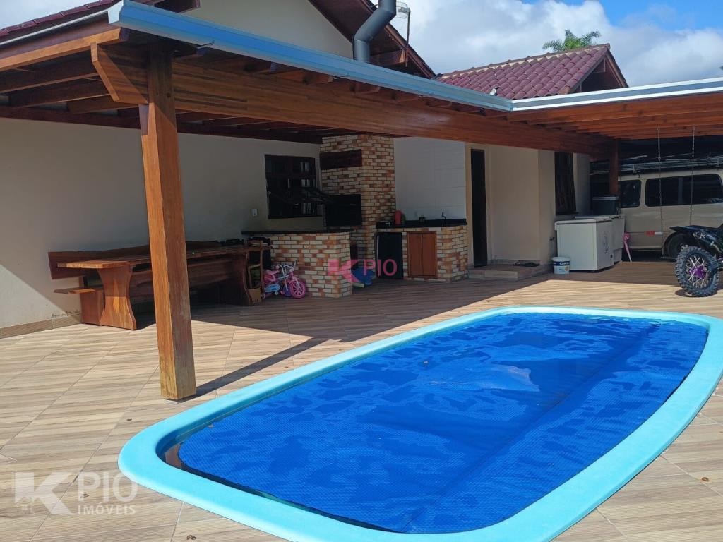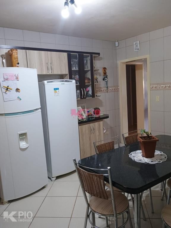 Casa no Morro da Saudade em Harmonia com 3 dormitórios, 2 banheiros, sala de tv, sala de jantar, cozinha, área de serviço e 3 garagens, 1 delas coberta. Também possui quiosque, piscina e churrasqueira.