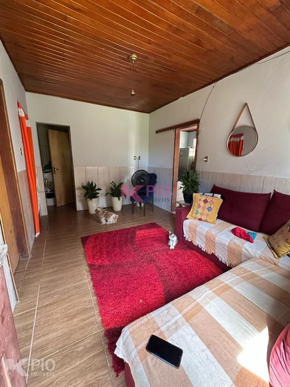 Casa de alvenaria com 70m² com 2 dormitórios, 1 banheiro, sala, cozinha, área de serviço e garagem coberta. Possui churrasqueira.