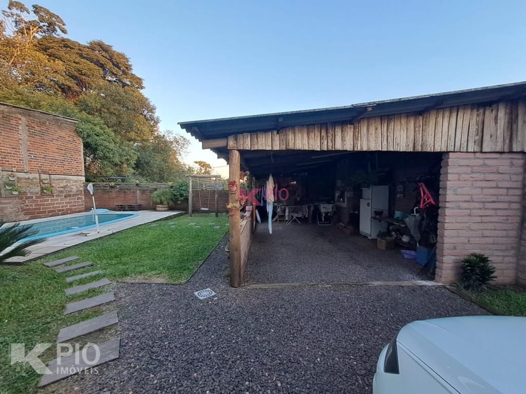 Casa em alvenaria com 03 dormitórios, banheiro, sala/cozinha. A casa também conta com uma garagem toda em Pedra Gres, com fogão campeiro, churrasqueira e área de serviço. Além do pátio murado e cercado, piscina e jardim. Garagem para 02 carros.