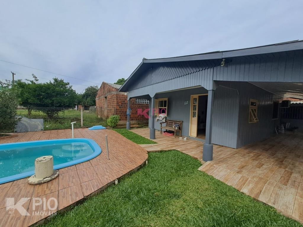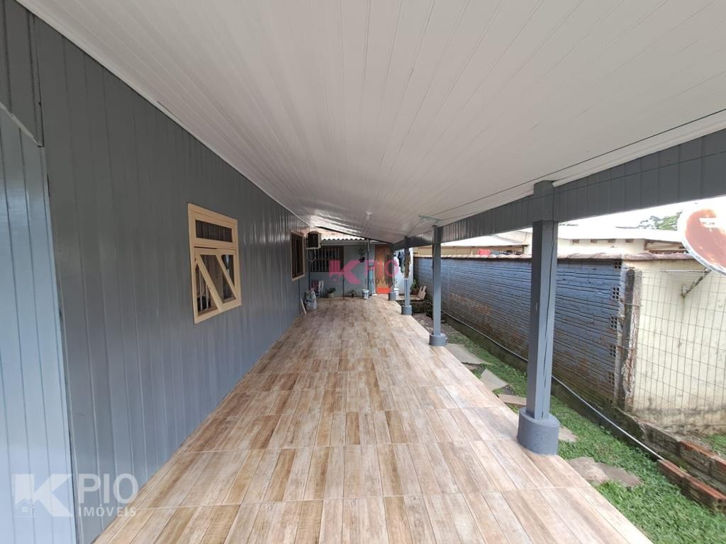 Casa em madeira, piso cerâmico com aprox. 90m² , 02 dormitórios, sala/cozinha, área de serviço, área/cobertura para 02 carros. Nos fundos quiosque com churrasqueira, banheiro e despensa.