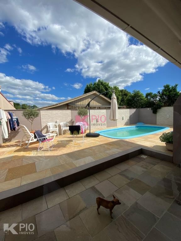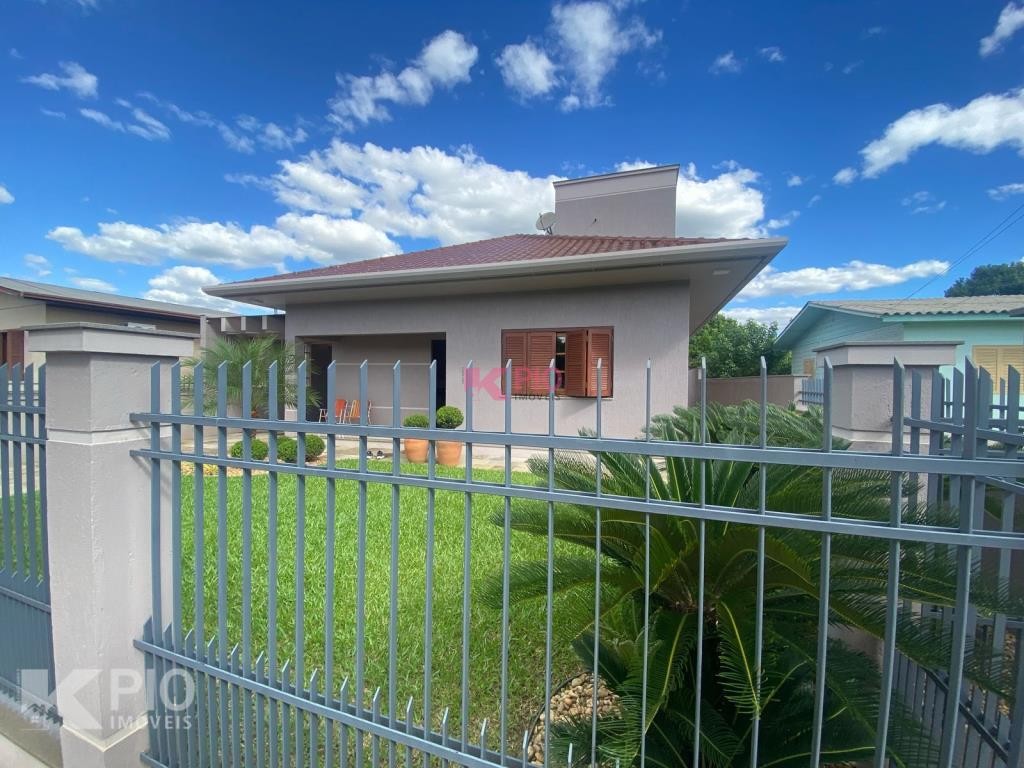 Casa de alvenaria no Loteamento São Sebastião com 3 dormitórios, 2 banheiros, 2 cozinhas, sala, aréa de serviço e garagem coberta. Também possui piscina e área gourmet.
