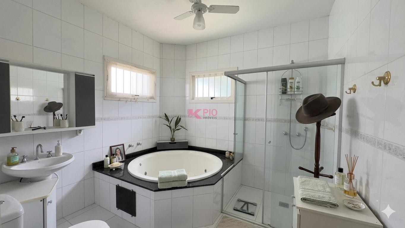 A casa ainda possui placas solares, garantindo economia de energia, e poço artesiano com laudo comprovado em laboratório, oferecendo mais autonomia e segurança.