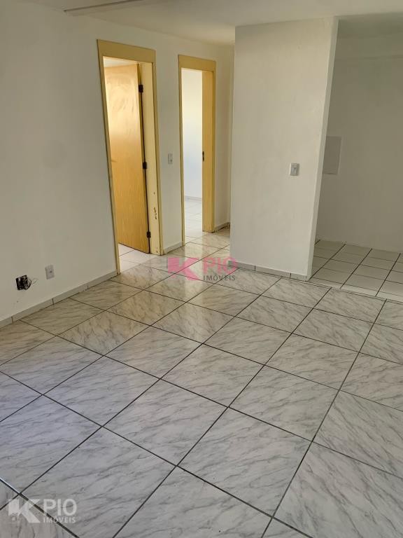 Apartamento térreo em São Leopoldo para locação, com 2 dormitórios, banheiro, sala, cozinha e 1 vaga de garagem.