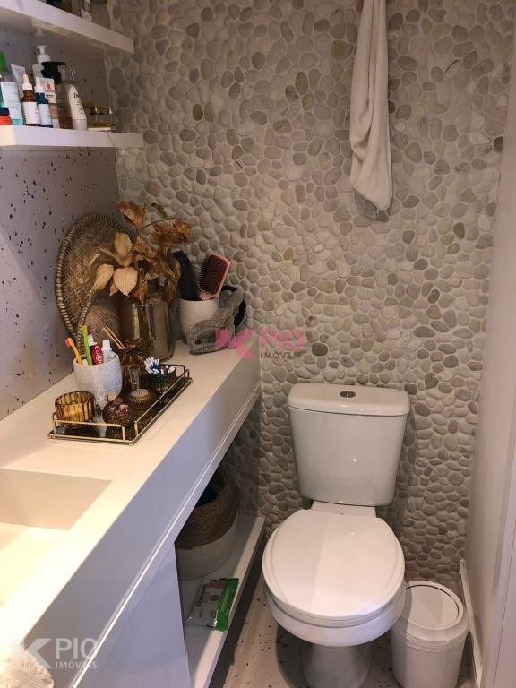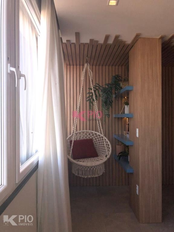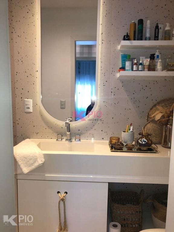 O apartamento também conta com ar condicionado central, forro de gesso, interfone, churrasqueira e alguns móveis sob medida.