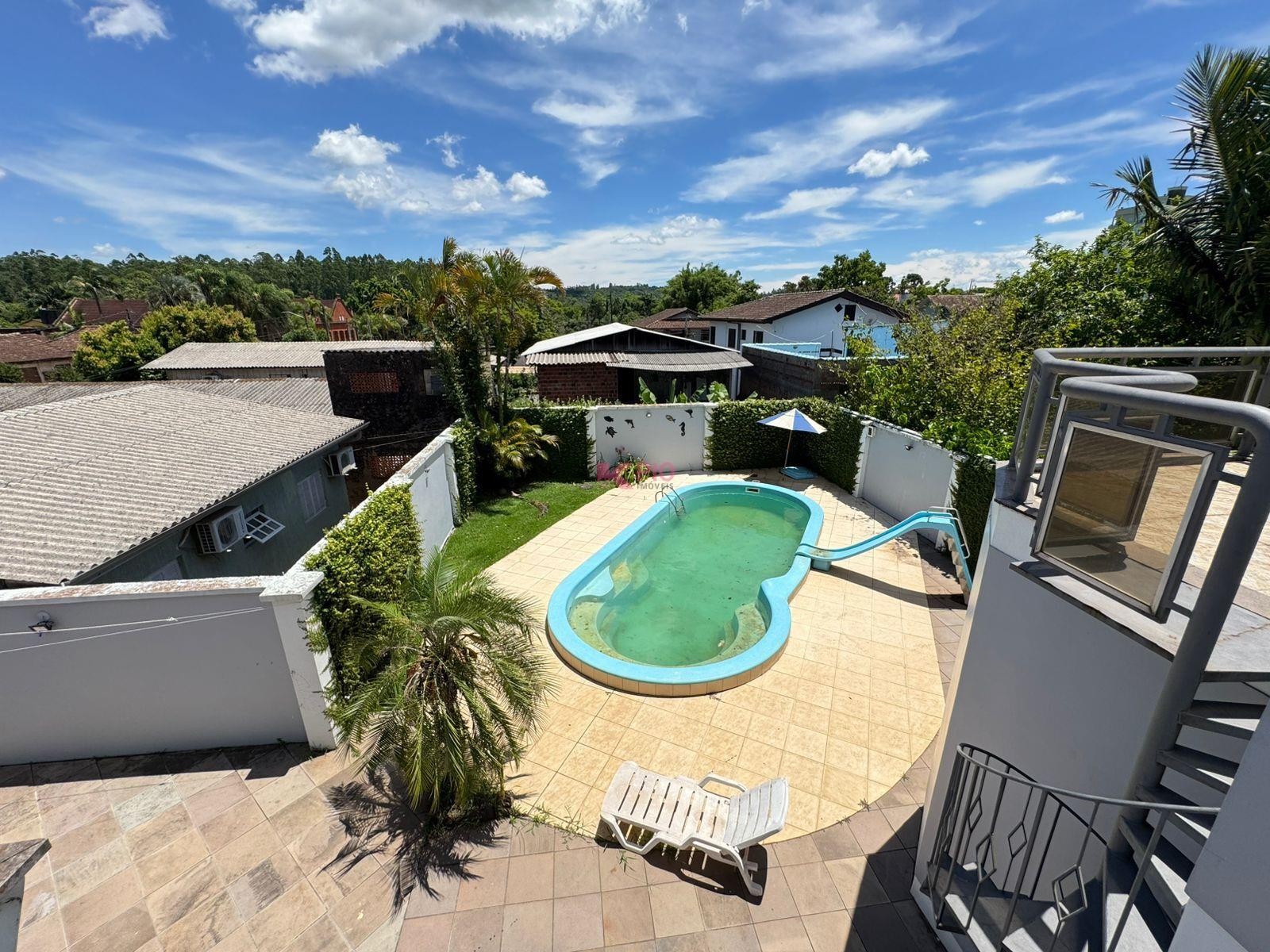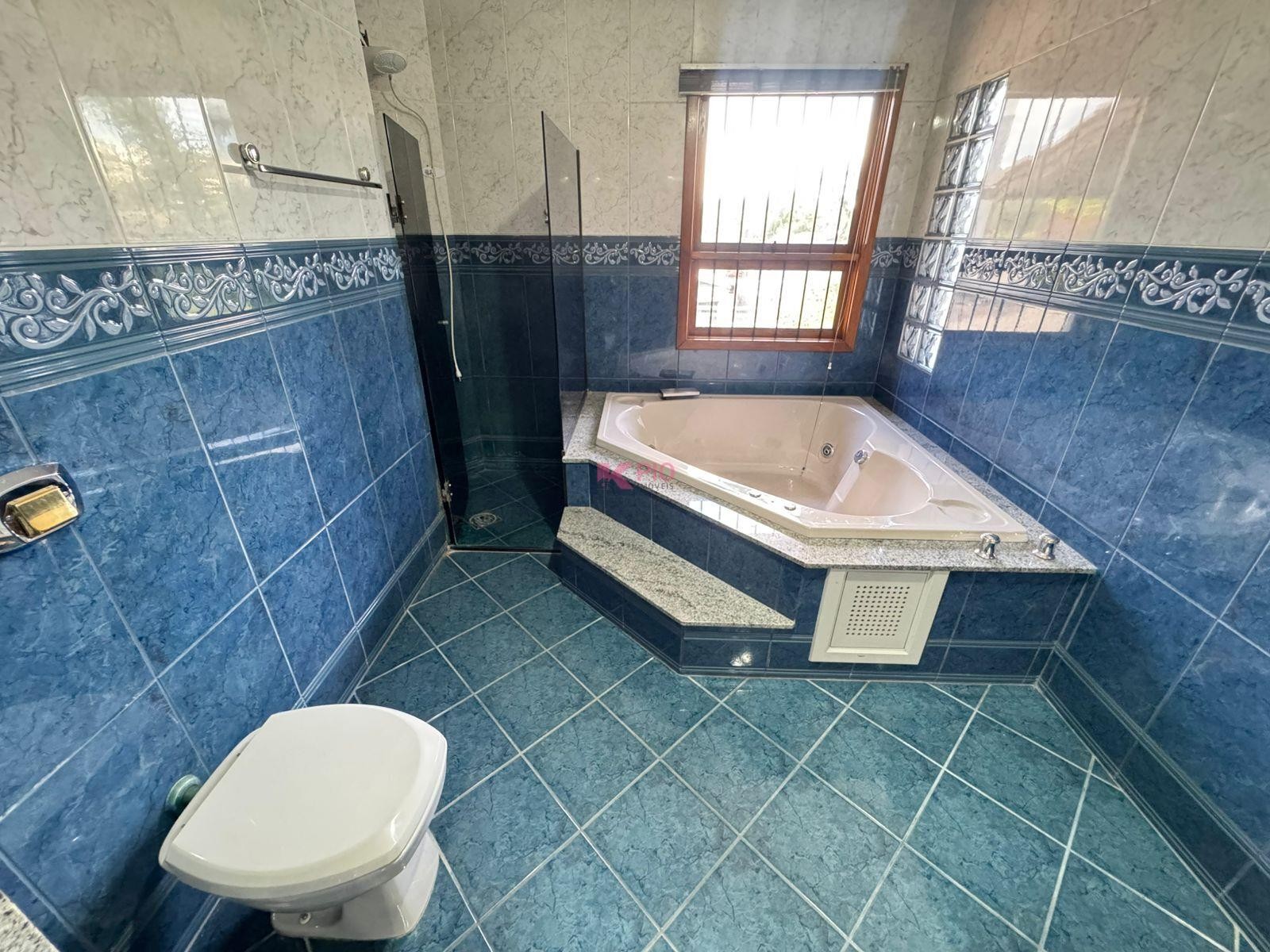 A cozinha é espaçosa e funcional, complementada por dispensa, garantindo praticidade no dia a dia. Para momentos de lazer e convivência, a residência oferece churrasqueira, lareira e uma belíssima piscina, perfeitas para receber amigos e familiares em todas as estações do ano.