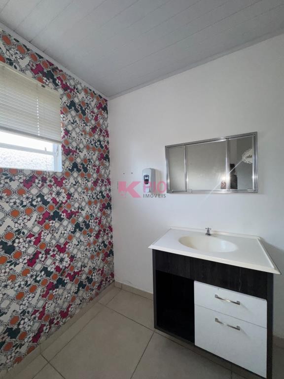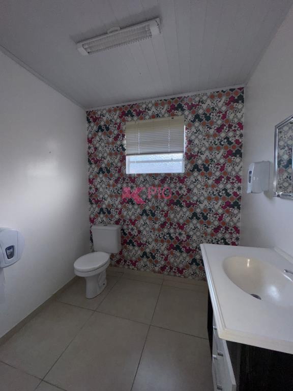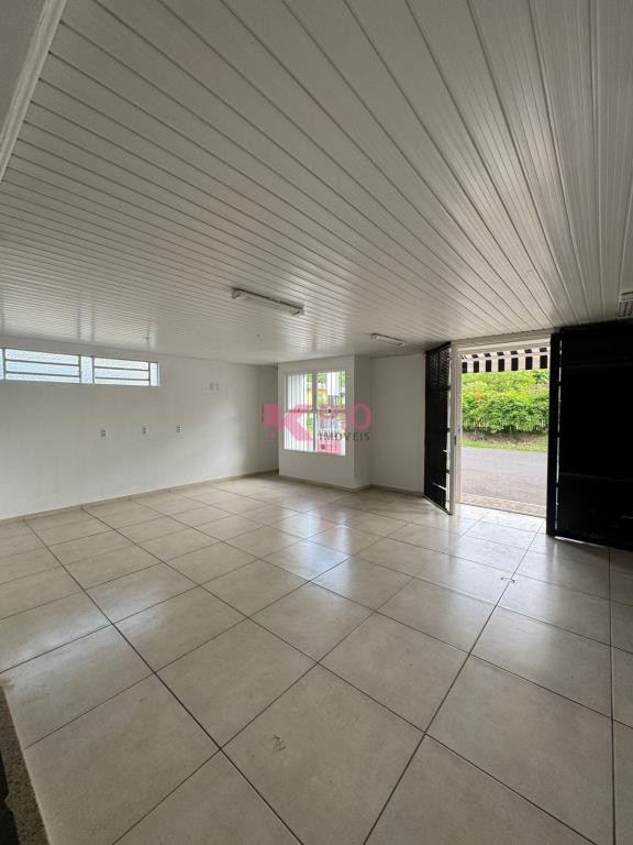 Sala comercial, com vitrine gradeada, sala ampla, piso frio, cozinha e banheiro.