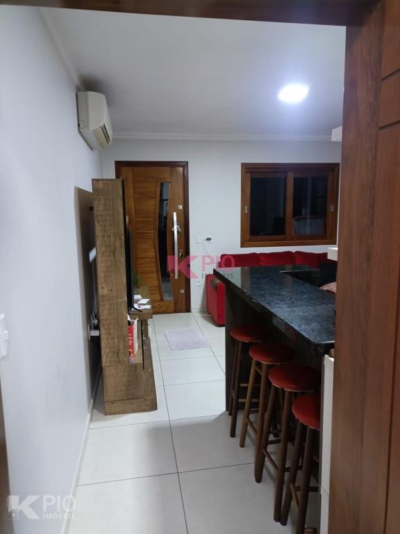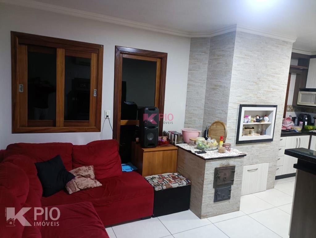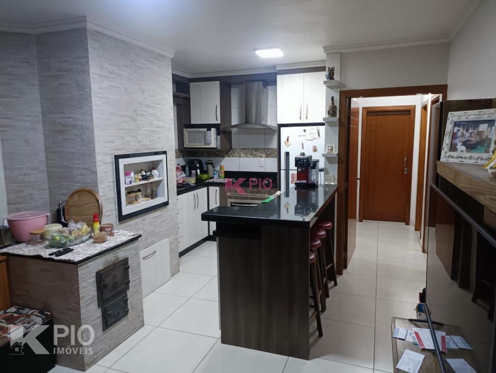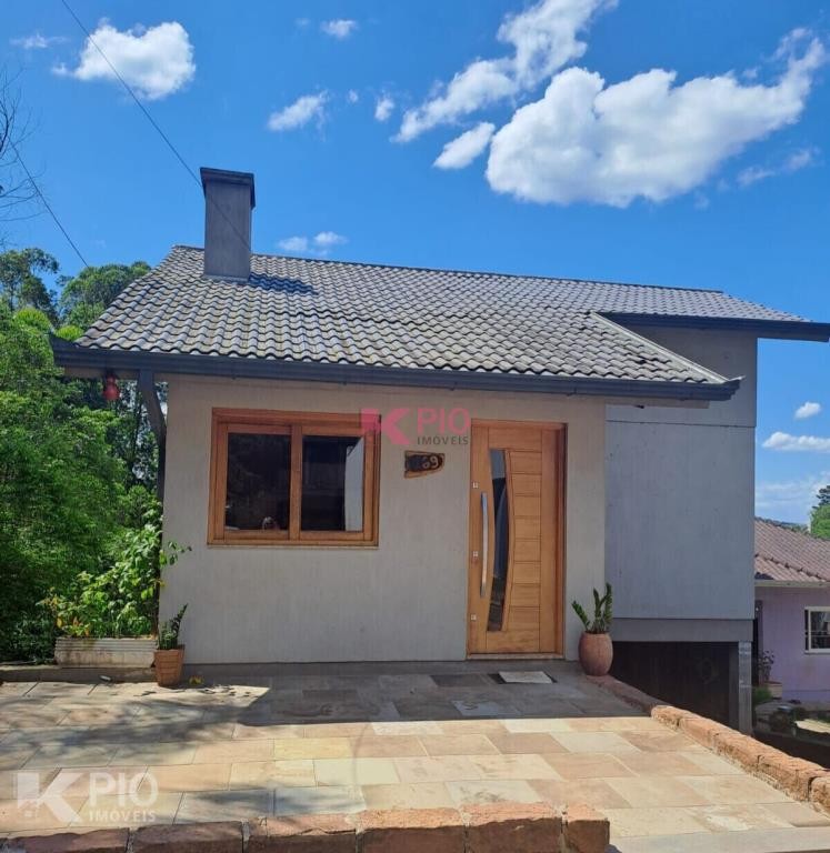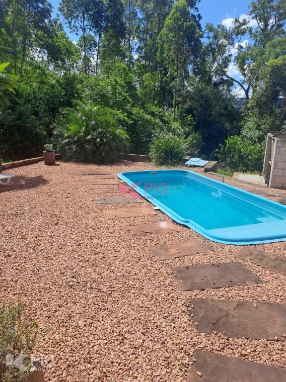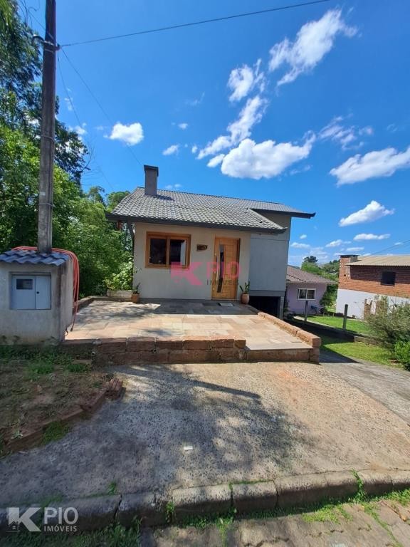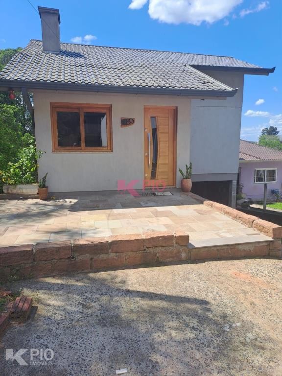 Casa em alvenaria com 03 dormitórios, 02 banheiros ( 01 suite), sala, cozinha com churrasqueira e fogão campeiro, área de serviço garagem e banheiro no térreo (em fase de acabamento, com possibilidade de um 4º dormitório) , piscina e canil nos fundos.