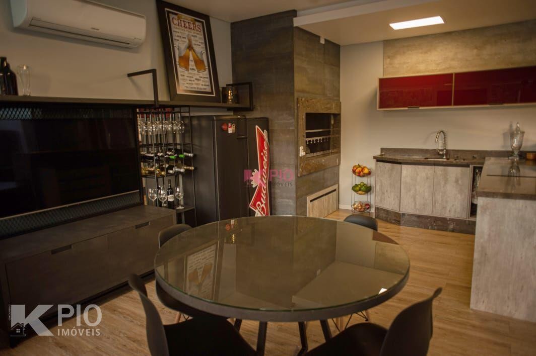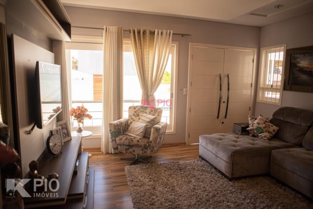 Belíssima casa em alvenaria com móveis sob medida, contendo 4 dormitórios, sendo 1 suíte, sala social, copa/cozinha, sala de tv com lareira, lavabo, um banheiro social, despensa, área de serviço, garagem com churrasqueira e escritório, móveis sob medida