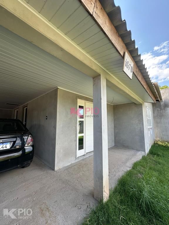Casa de alvaneria com 2 dormitórios, 1 banheiro, sala, cozinha, área de serviço e gaagem coberta.