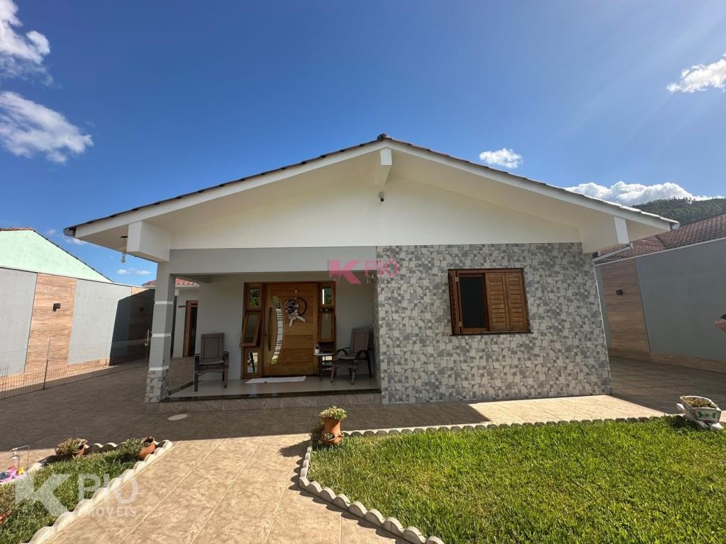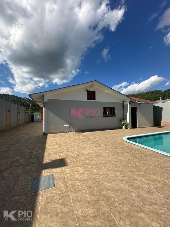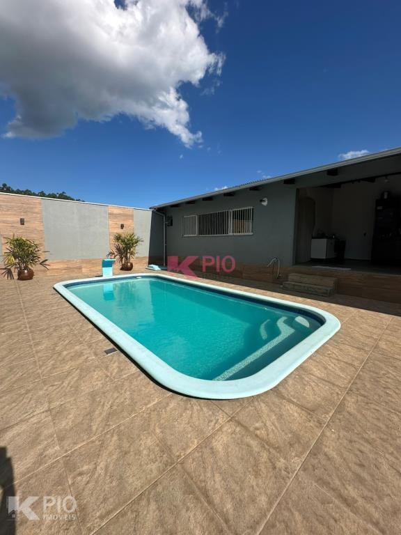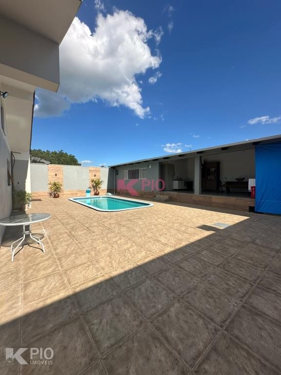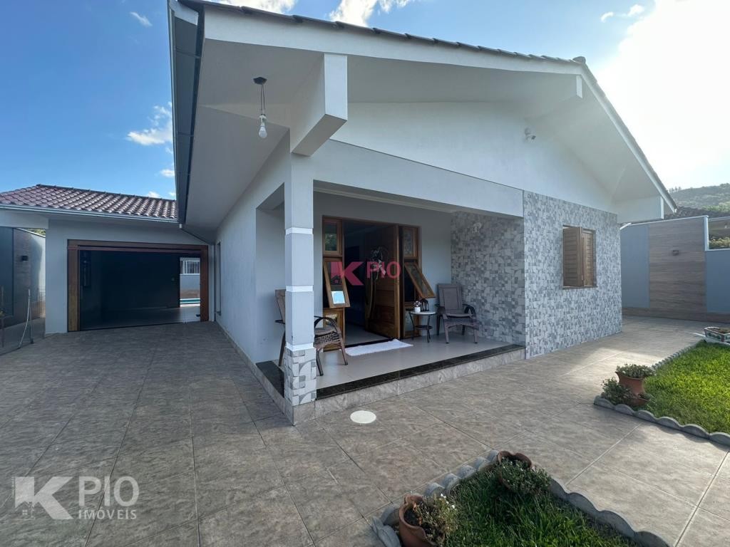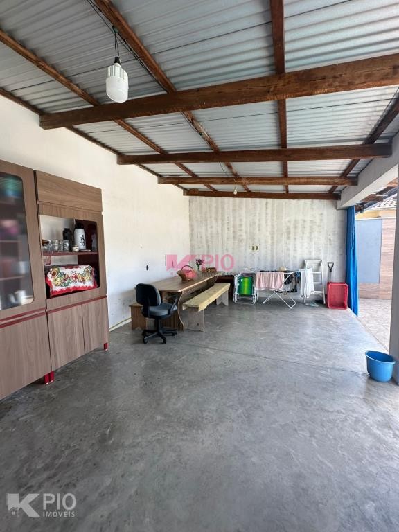 Casa de alvenaria com 3 dormitórios, sala, cozinha, banheiro, área de serviço, 1 vaga e com banheiro social. Também possui um quiosque com 1 quarto, cozinha e lavandria. Com câmeras de segurança, piscina, churasqueira e portões eletrônicos.