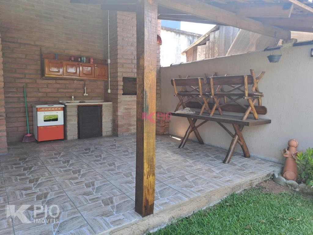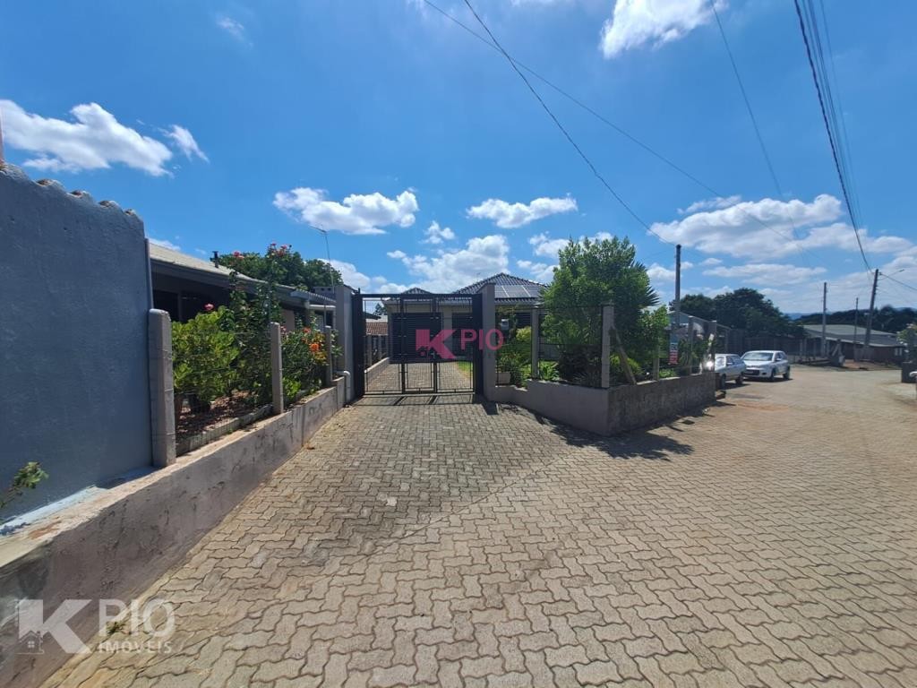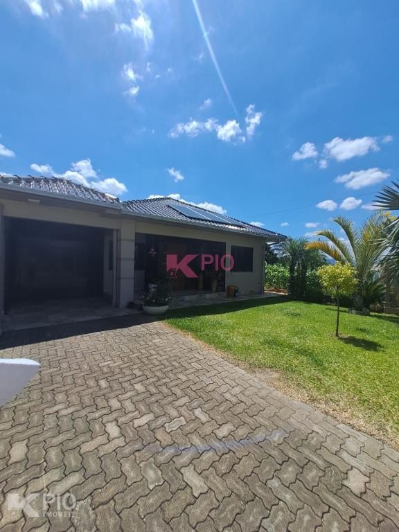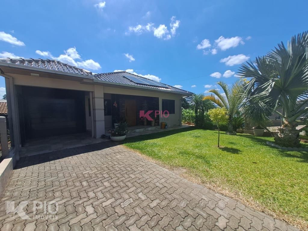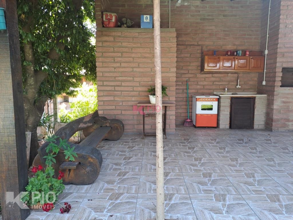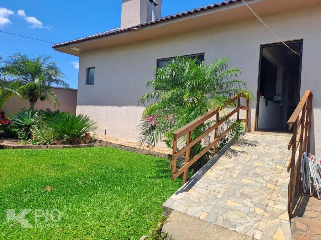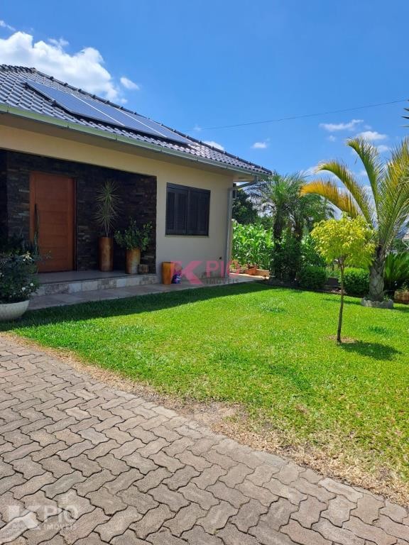Casa em alvenaria, com 03 dormitórios, sendo 01 suíte, sala, cozinha, garagem para 03 carros, na garagem têm pia e churrasqueira, anexo à garagem também área de serviço , quiosque nos fundos de pedras grês com churrasqueira, pia e banheiro, bancos e acabamentos em madeiras rústicas, jardim e galpão para utensílios. A casa ainda conta com sistema de Placas Solares. Portões eletrônicos.