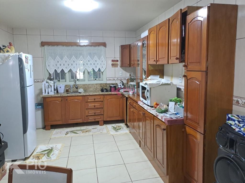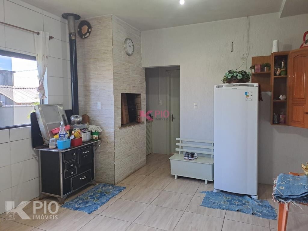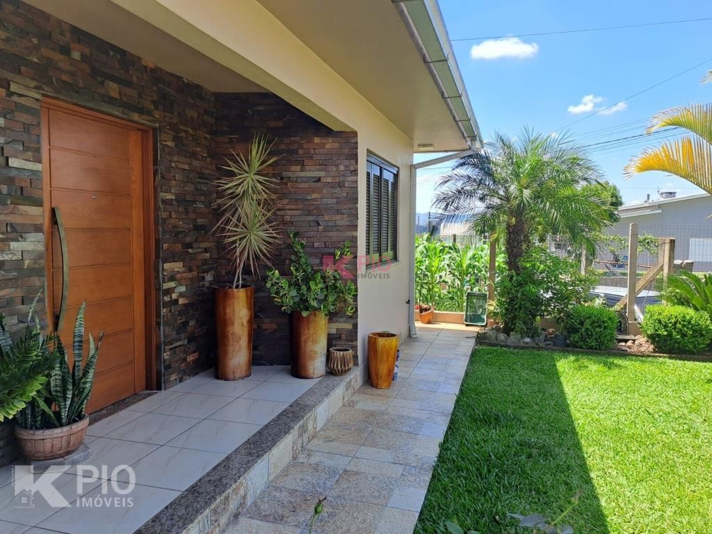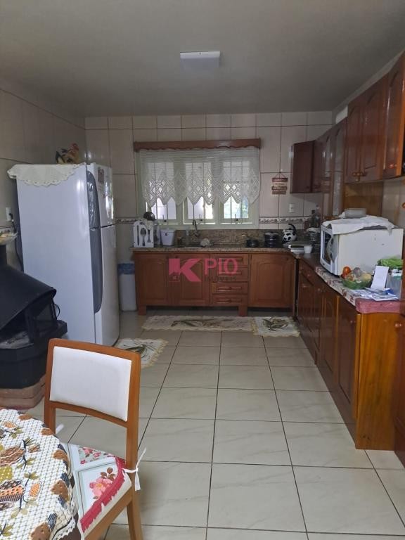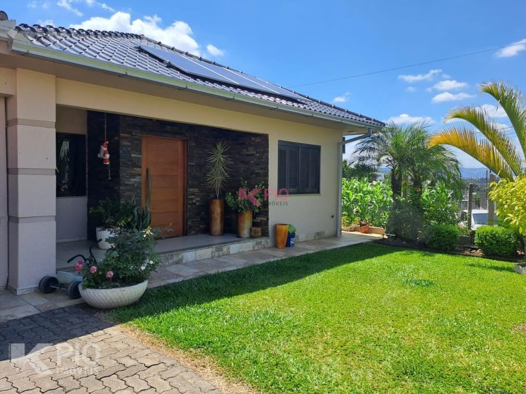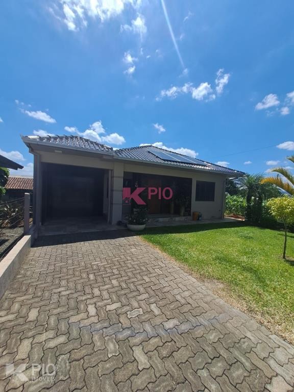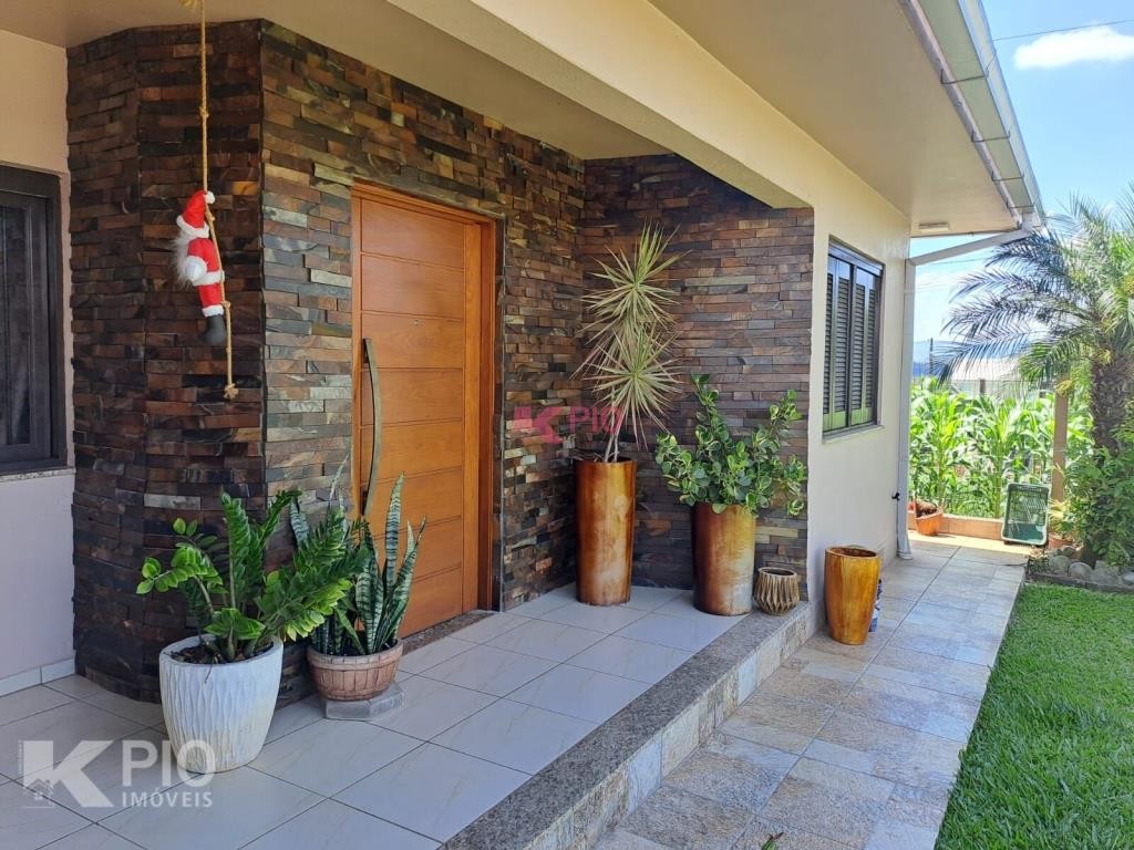 Casa em alvenaria, com 03 dormitórios, sendo 01 suíte, sala, cozinha, garagem para 03 carros, na garagem têm pia e churrasqueira, anexo à garagem também área de serviço , quiosque nos fundos de pedras grês com churrasqueira, pia e banheiro, bancos e acabamentos em madeiras rústicas, jardim e galpão para utensílios. A casa ainda conta com sistema de Placas Solares. Portões eletrônicos.