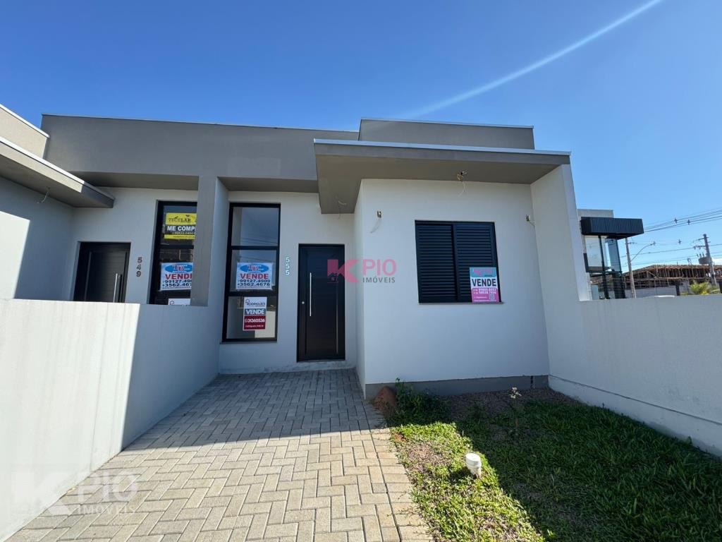 Casas alvenaria, Pé direito mais alto na área social. 02 dormitórios, sala/cozinha, banheiro, espaço para veículo no pátio da frente, pátio de serviços nos fundos e pátio lateral.