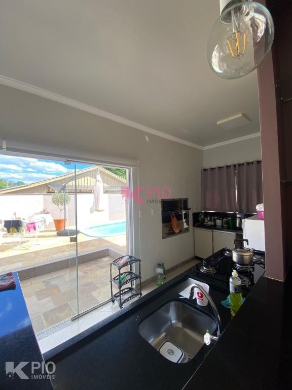 Casa de alvenaria no Loteamento São Sebastião com 3 dormitórios, 2 banheiros, 2 cozinhas, sala, aréa de serviço e garagem coberta. Também possui piscina e área gourmet.